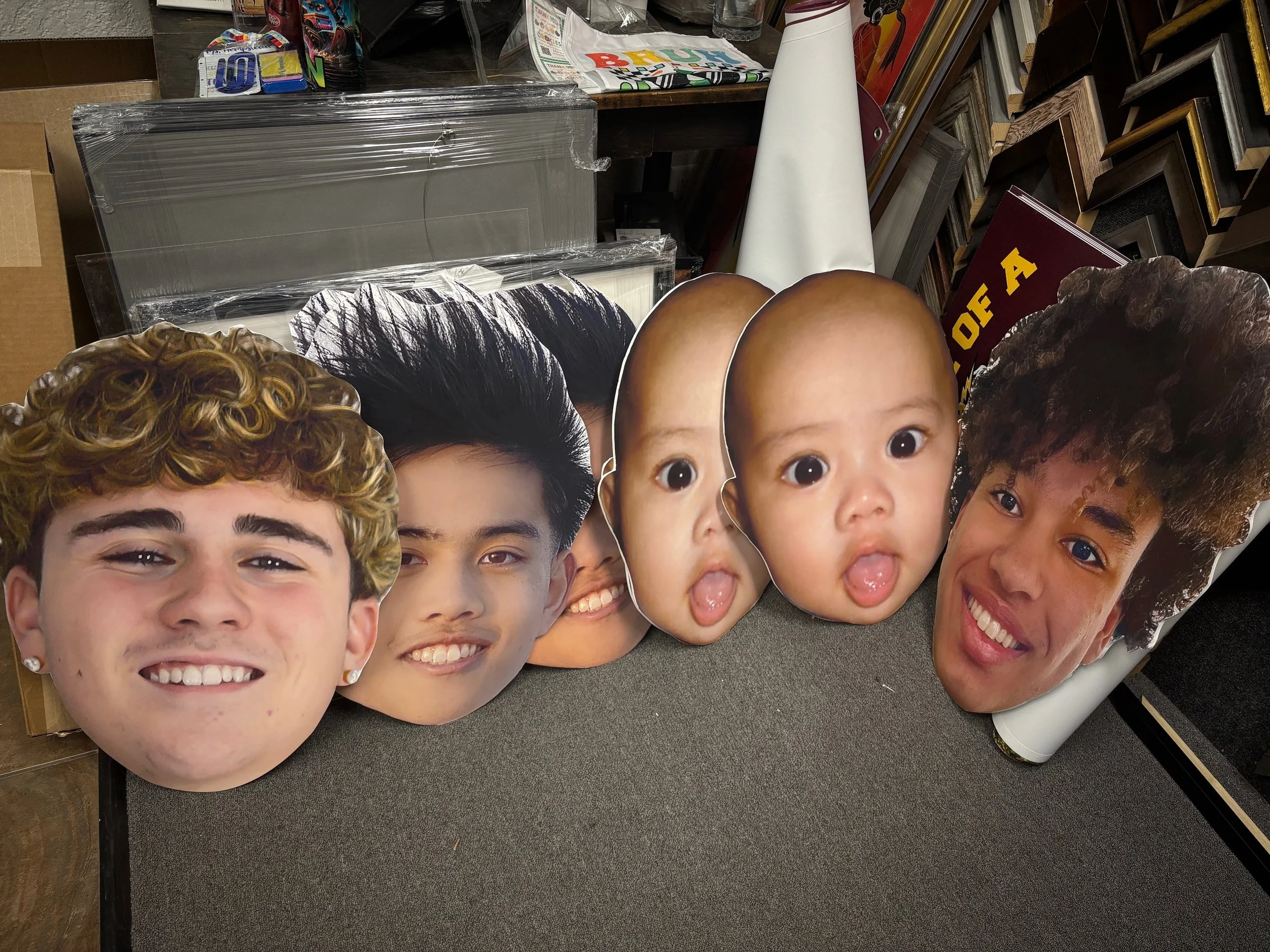 Make your next sporting event or graduation unforgettable with our fun and personalized Big Head Cutouts! Available in a variety of size options, these eye-catching cutouts are designed for easy holding with handles on the back, allowing fans and loved ones to display their support with style. Perfect for cheering on your favorite team or celebrating your graduate's big achievement, these vibrant cutouts will stand out in the crowd and create memorable photo opportunities. Turn heads and capture smiles with these unique additions to your event!